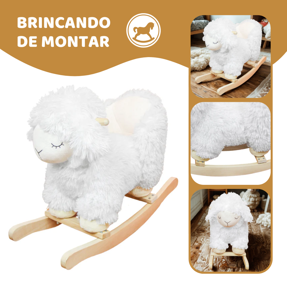 Deixe a imaginação e a diversão rolarem soltas com a nossa adorável Ovelha Peludinha de Balanço Musical com Assento! Confeccionada em pelúcia macia, com pés e apoio de mãos em madeira, ela garante um balanço seguro e confortável para a criança brincar e se divertir sozinha. Ao apertar a orelhinha, a ovelha emite sons, tornando a experiência ainda mais interativa e envolvente. Com fácil manuseio, ela não só decora o ambiente com um toque de ternura, como também é perfeita para estimular a coordenação e o equilíbrio dos pequenos. Feita de plush poliéster com madeira, é ideal para crianças até 3 anos. O produto segue desmontado, com manual de instruções para facilitar a montagem. Importante: necessita de 2 pilhas AA, que não acompanham o produto.