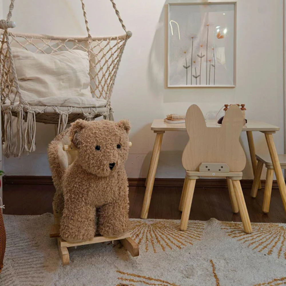 Garanta a diversão e a segurança dos pequenos com o nosso adorável Ursinho de Balanço com Assento! Ele possui apoio para os pezinhos e para as mãos, tornando o balanço seguro e confortável para que as crianças possam brincar e se divertir sozinhas. Este ursinho, além de ser um encanto na decoração, é ideal para estimular a coordenação e o equilíbrio. O produto segue desmontado, com manual de instruções (requer chave de fenda para montagem). Reúna as crianças que a brincadeira vai começar! Complete a brinquedoteca com toda a nossa linha para uma diversão ainda mais completa. Feito em madeira, é indicado para crianças a partir de 3 anos.