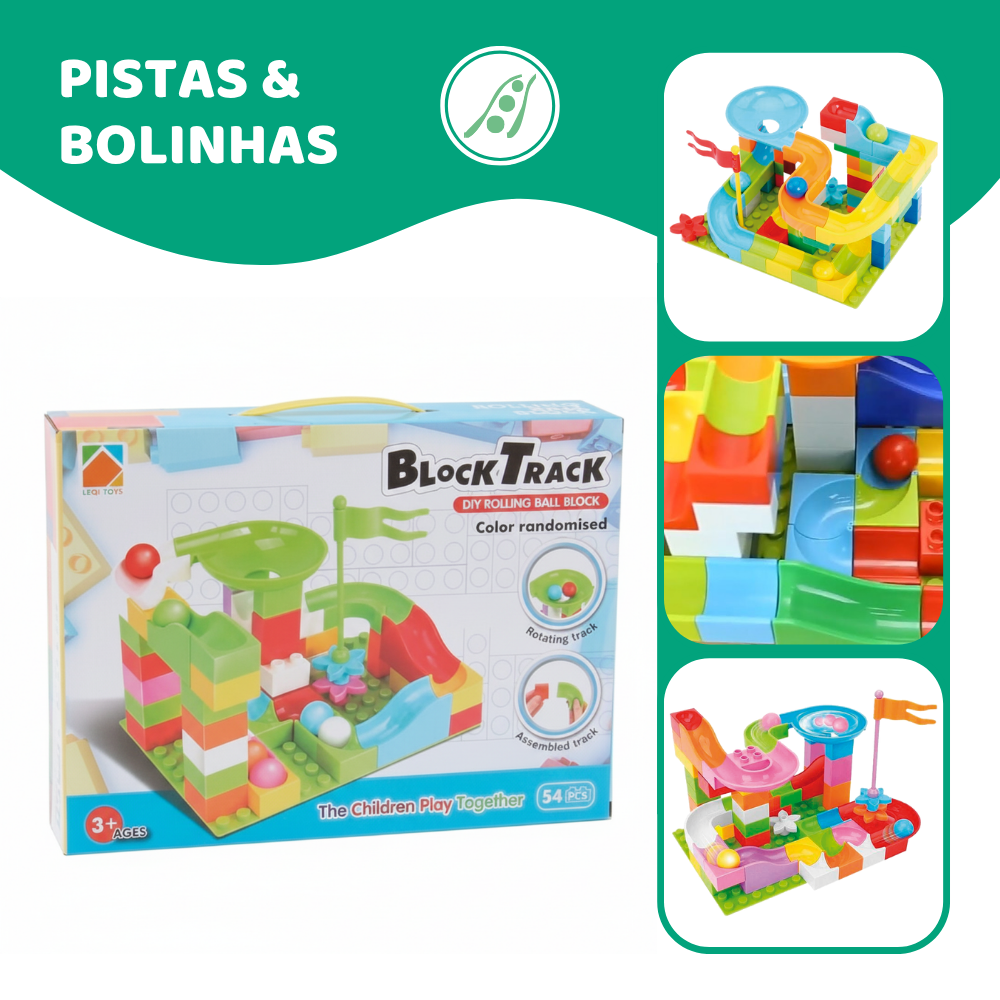 Block Track Slide com 54 peças é um brinquedo que permite montar pistas e rampas para bolinhas deslizarem, promovendo o desenvolvimento do raciocínio lógico, coordenação motora e criatividade. Uma forma divertida e interativa de aprender enquanto brinca.
