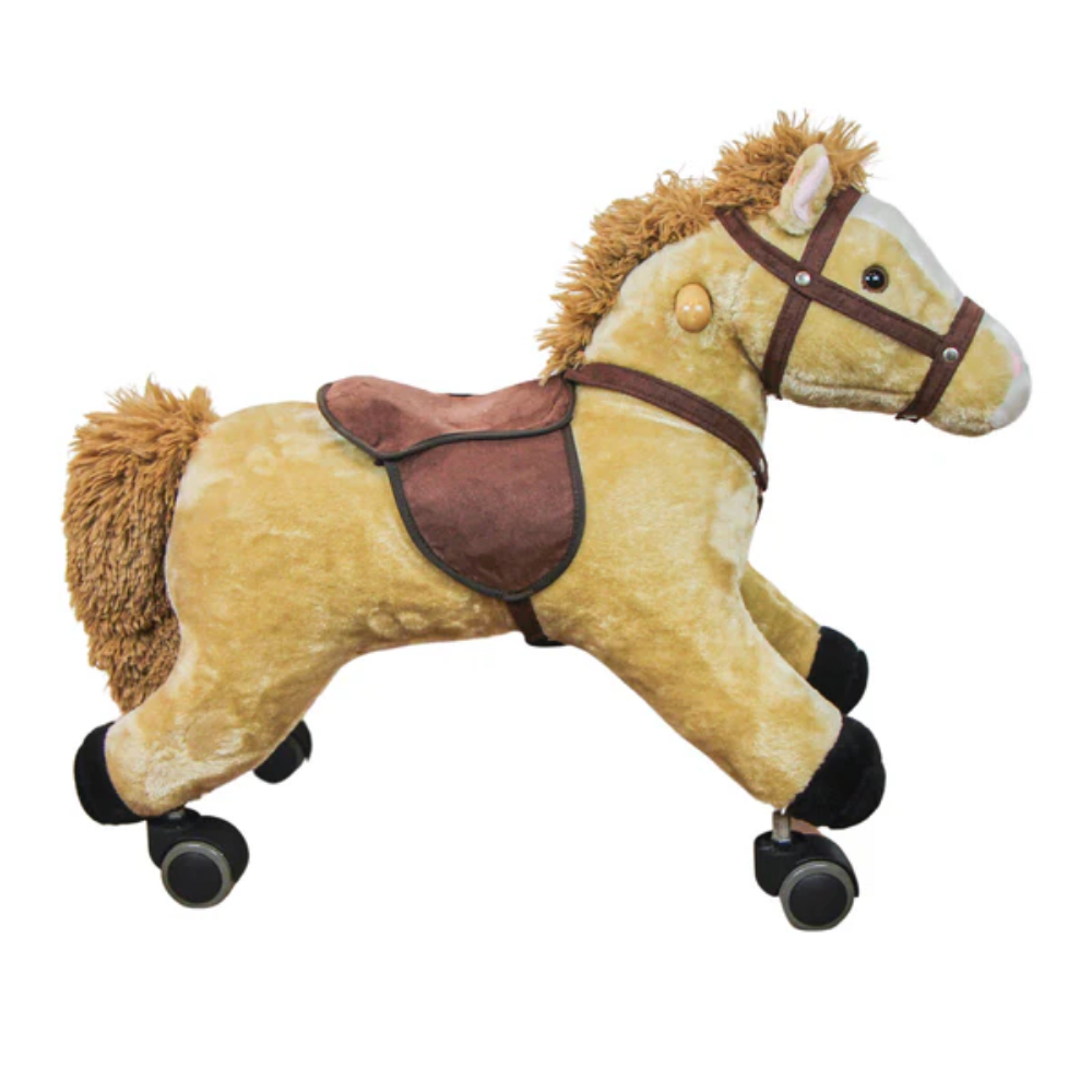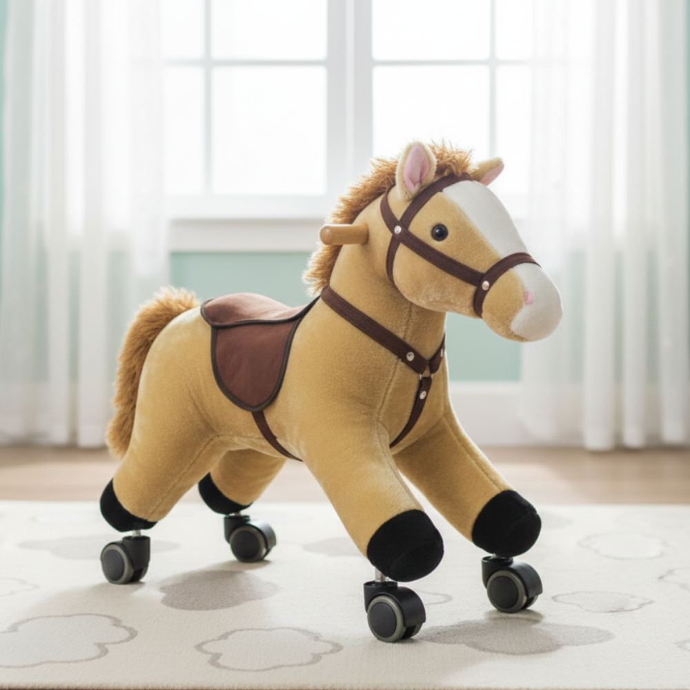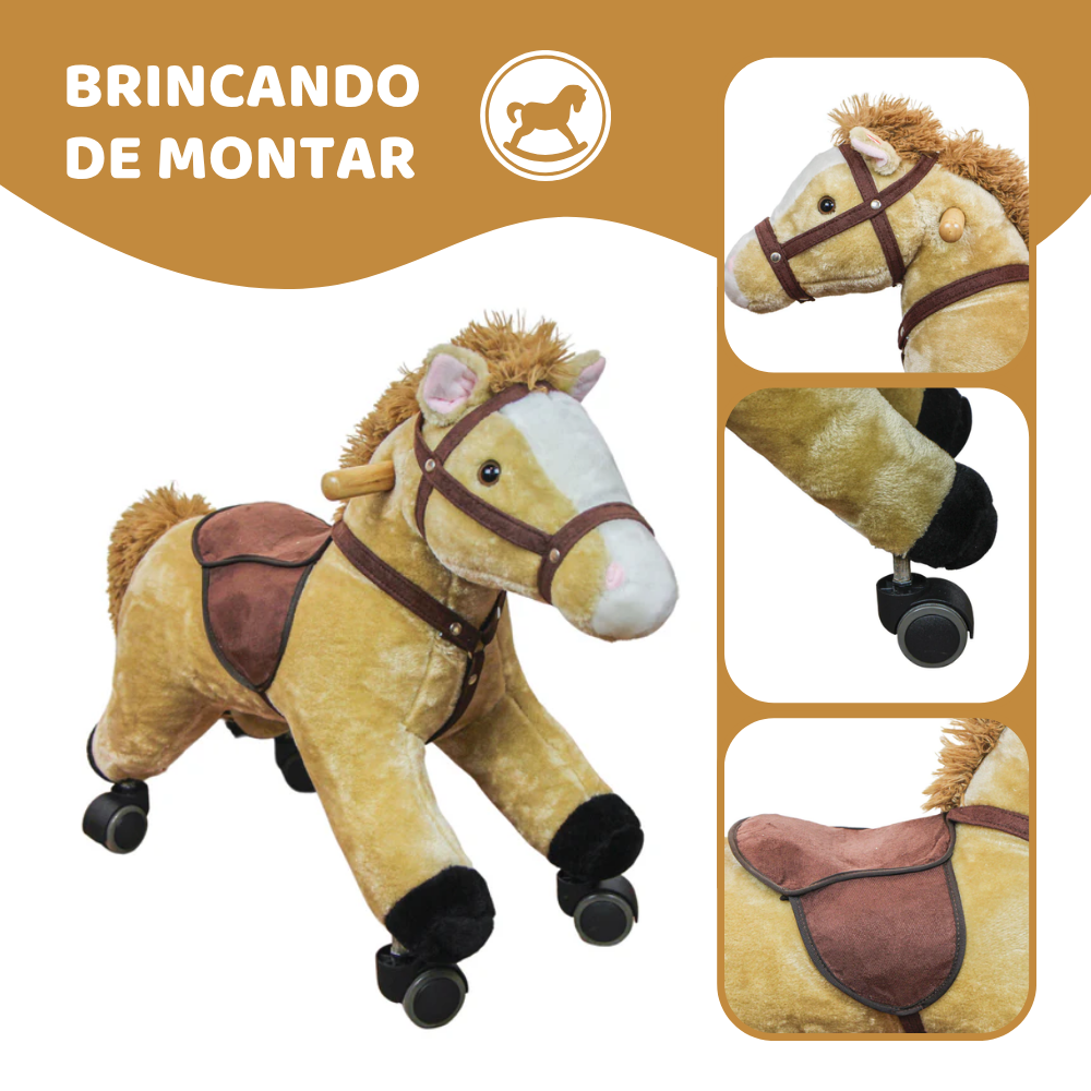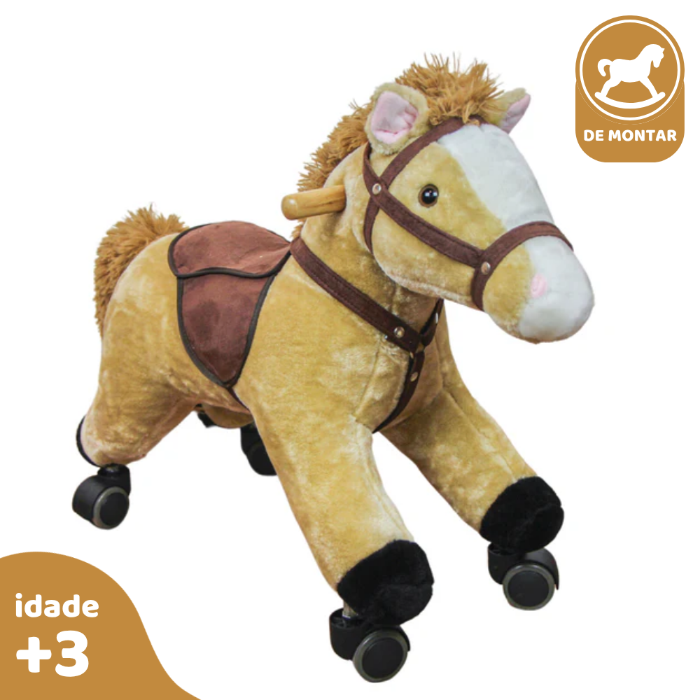 Traga a diversão para dentro de casa com o nosso encantador Cavalinho Pocotó com Rodinhas! Confeccionado em pelúcia macia, ele possui apoio para as mãos e rodinhas para um passeio diferente e seguro. Além de ser um item decorativo adorável, o cavalinho é ótimo para divertir os pequenos, estimulando a coordenação e o equilíbrio enquanto eles exploram o ambiente. Ideal para crianças até 3 anos. O produto segue desmontado, com manual de instruções para facilitar a montagem. Importante: necessita de 2 pilhas AA, que não acompanham o produto.