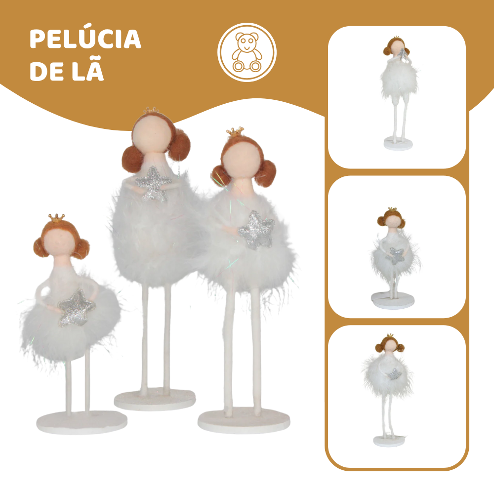Encante-se com este gracioso conjunto de 3 bailarinas em feltro de lã! Cada bailarina, com tamanhos variados e uma sólida base de MDF, é cuidadosamente confeccionada para capturar a graça e a elegância da dança, trazendo um toque especial à brincadeira. Ideal para criar cenários de balé e estimular a imaginação das crianças, este conjunto adiciona um charme encantador à brinquedoteca dos pequenos sonhadores.