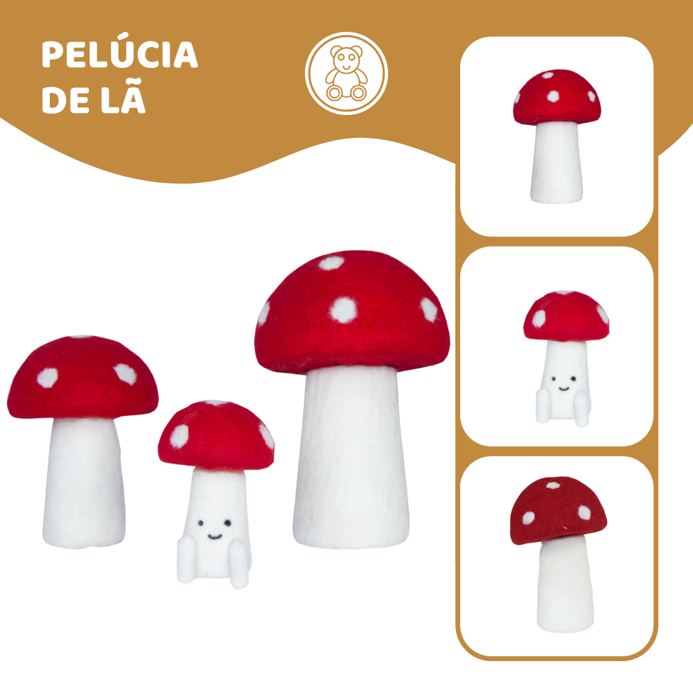 Encante-se com este charmoso conjunto de 3 cogumelos de feltro de lã, cada um em um tamanho único! Com um design detalhado e adorável, esses cogumelos são perfeitos para enriquecer as brincadeiras de faz de conta e despertar a imaginação das crianças. Ideais para criar mundos mágicos e aventuras divertidas na brinquedoteca, eles prometem horas de encanto.