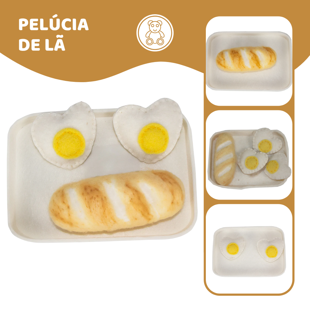 Comece o dia com a brincadeira com este adorável Jogo Pão e Ovos de Lã de Feltro! Ele vem com uma bandeja, um pãozinho e dois ovos, tudo feito em feltro. Nossas peças em feltro são criadas pensando no desenvolvimento das habilidades e criatividade dos pequenos, e elas combinam perfeitamente com nossas peças de madeira, completando a brinquedoteca e tornando a diversão ainda mais educativa.